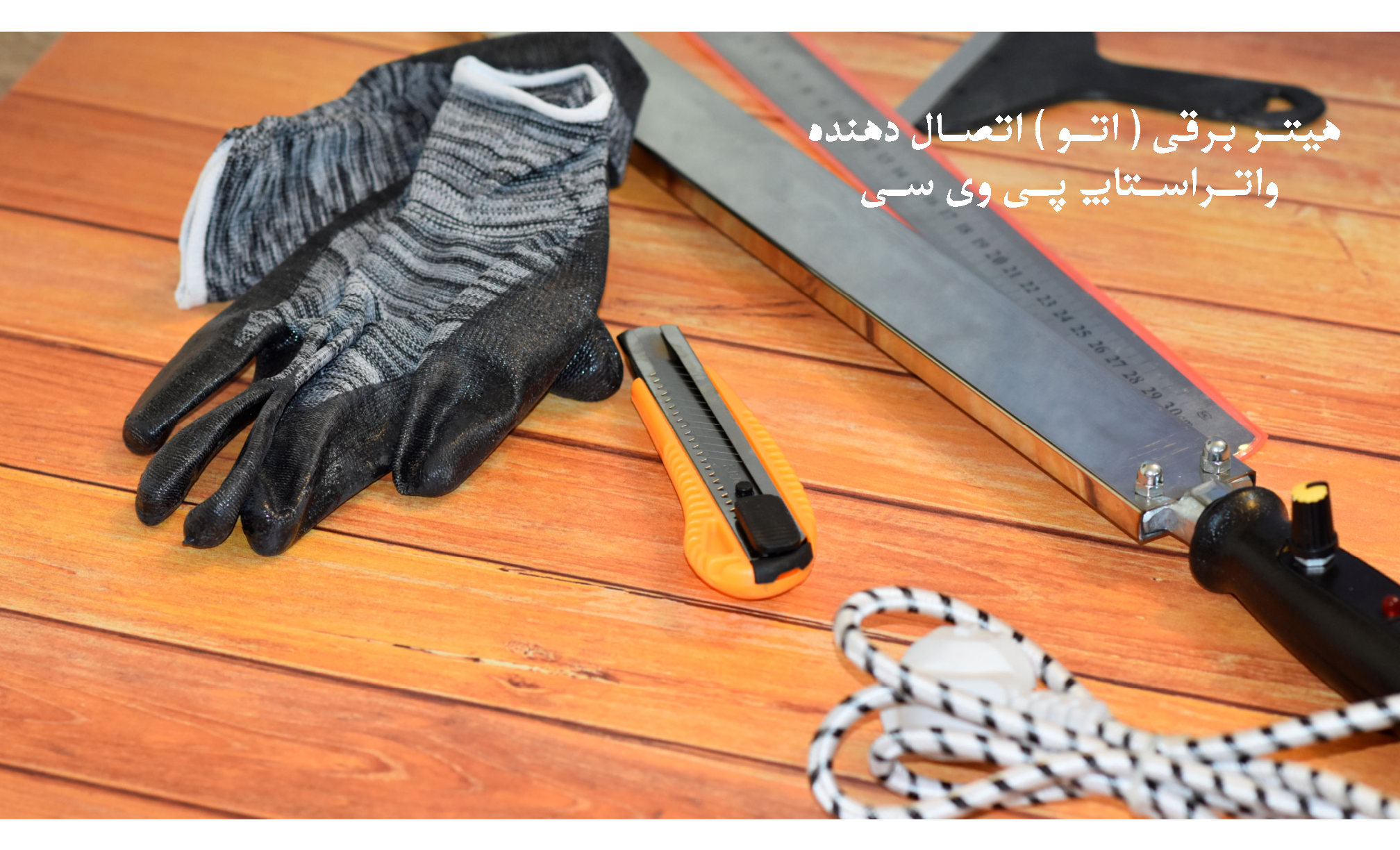 شاسی، تراز واتراستاپ، خطکش فلزی، کاتر، کاردک، دستکش ایمنی